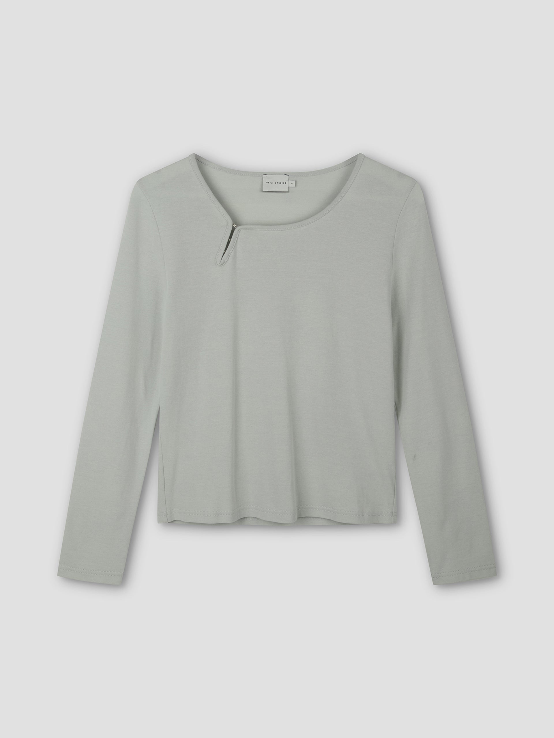 top designed with long fitted sleeves and scoop neckline. Features hook and eye closure on front in a close, flattering fit