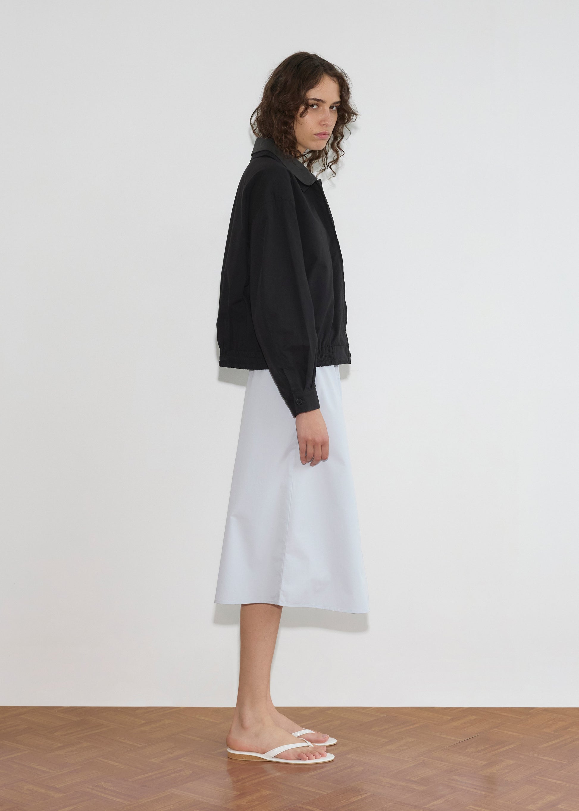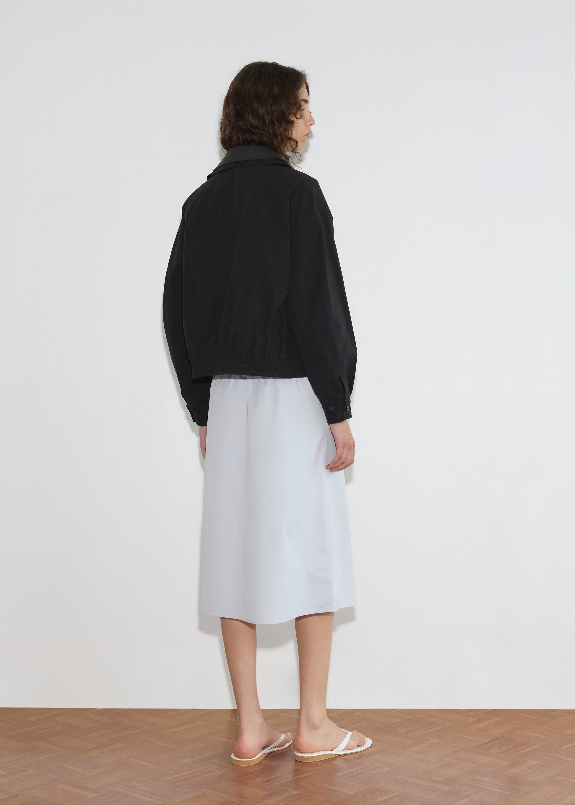 the collared zip jacket by Deiji Studios in black contrast